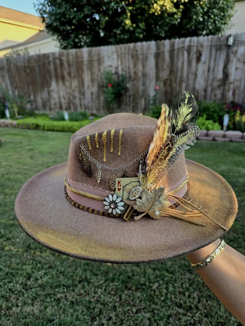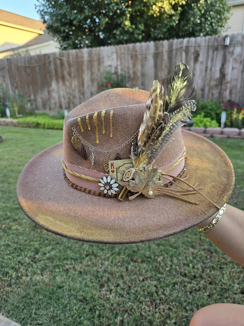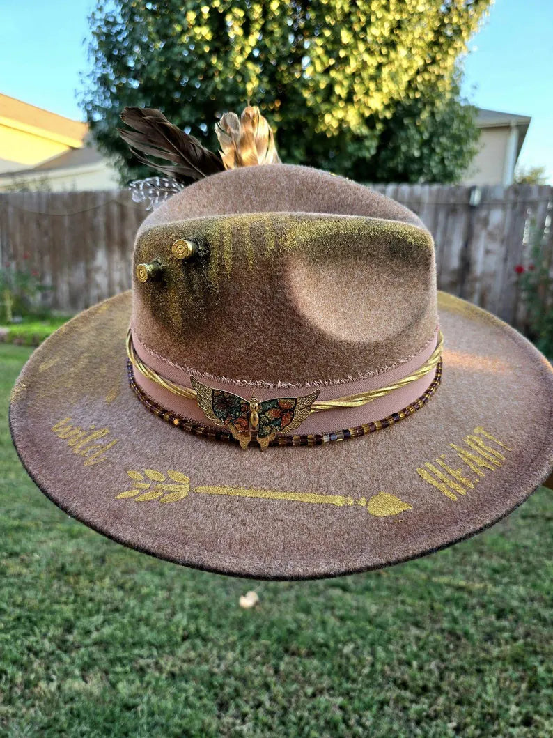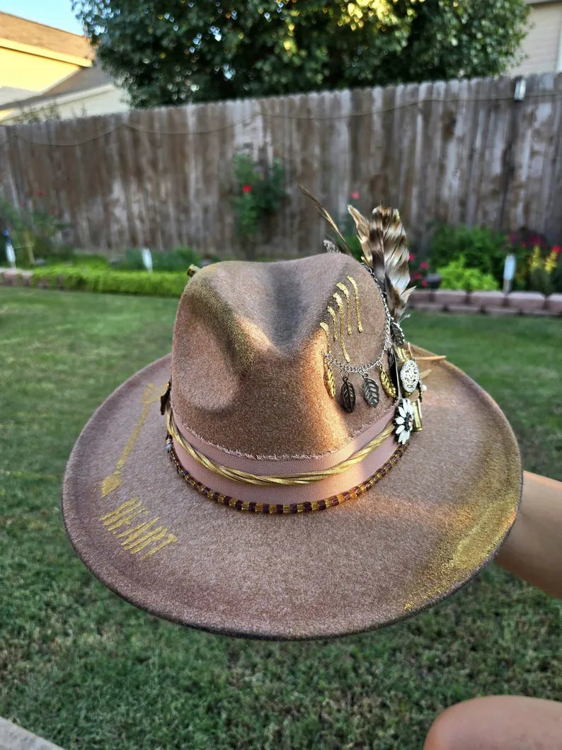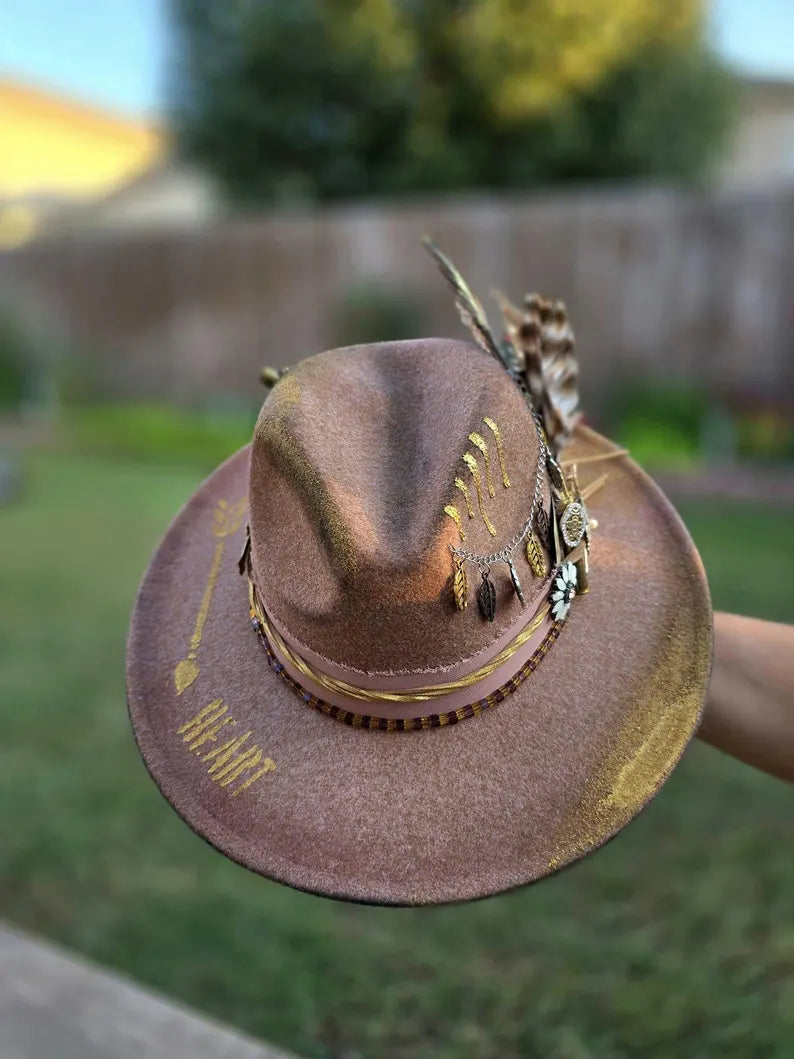 Woman Felt Flat Brim Cowgirl Hat, Brown cowgirl hat, Dressy Cowgirl Hat, Girls Western Hat, Blingy Flarbrim Boho Hat, Wool Fedora Hat