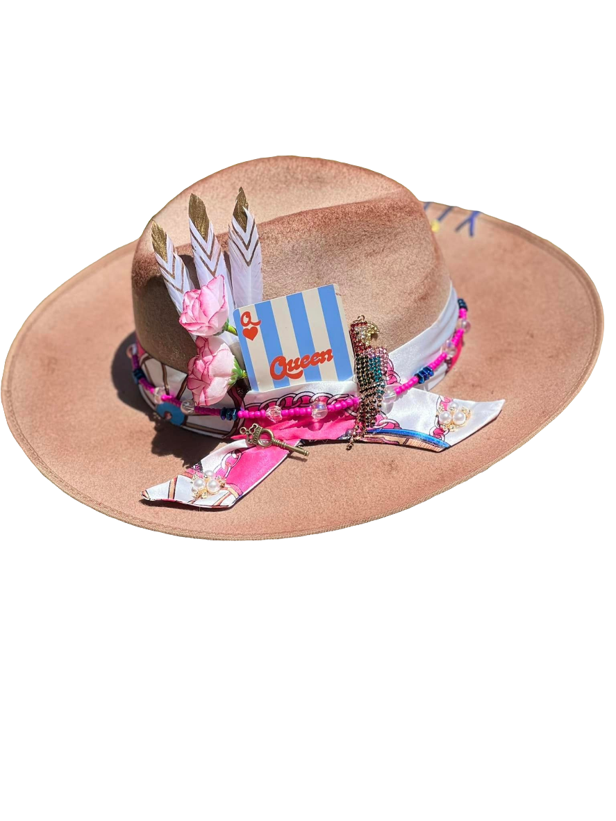 Introducing the enchanting "Ms. Bird" wide brim hat, a dazzling celebration of color and creativity that brings a vibrant splash of rainbow hues to the world of fashion. This hat is a true masterpiece, designed to captivate the imagination and ignite a sense of wonder.