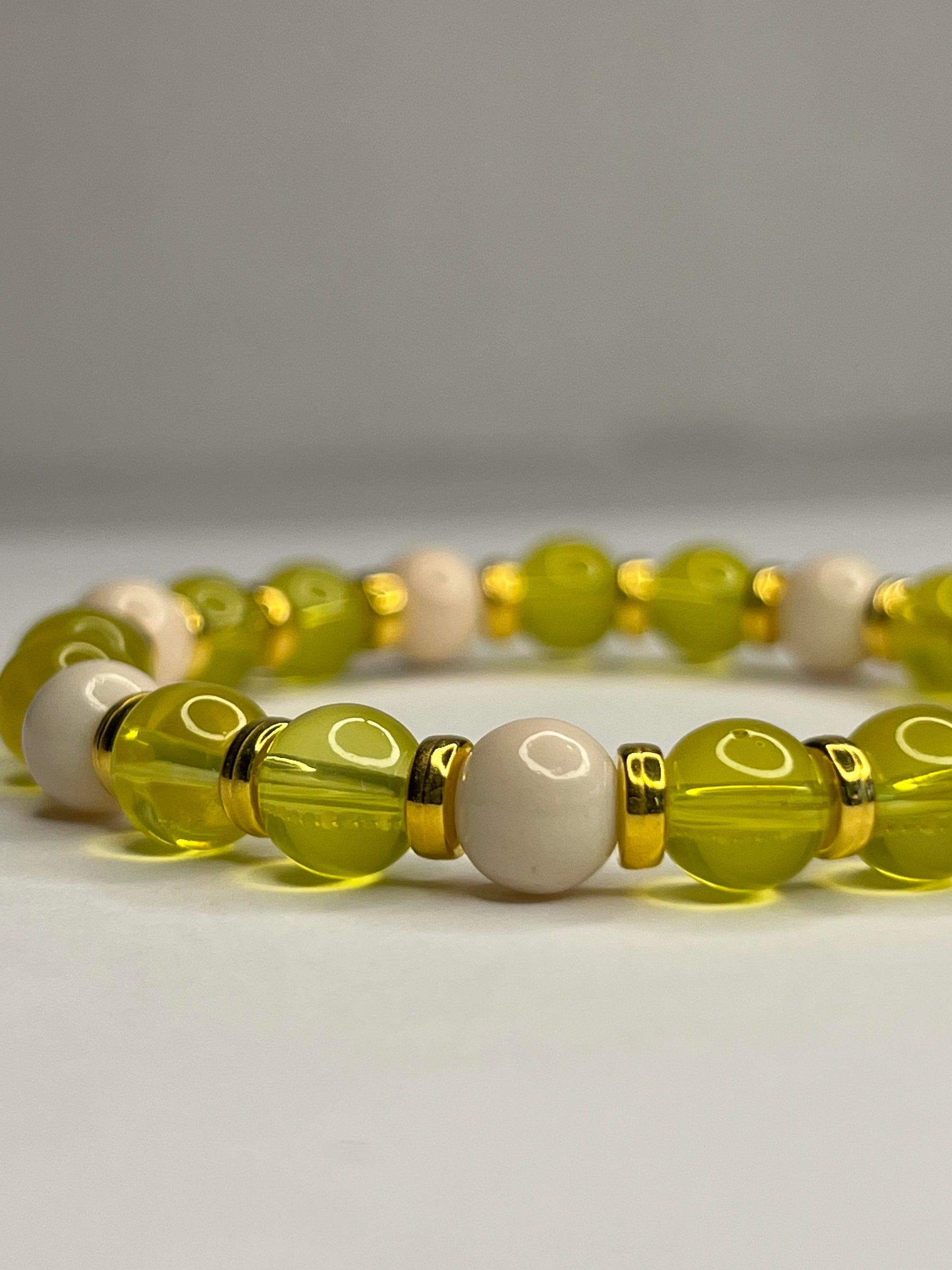 Combining Apophyllite, Yellow Crystal (likely referring to a crystal with a yellow hue, such as Citrine), and Golden Steel in a jewelry piece creates a unique blend of natural beauty, vibrant energy, and contemporary elegance. Each element contributes its own set of qualities to the overall design: