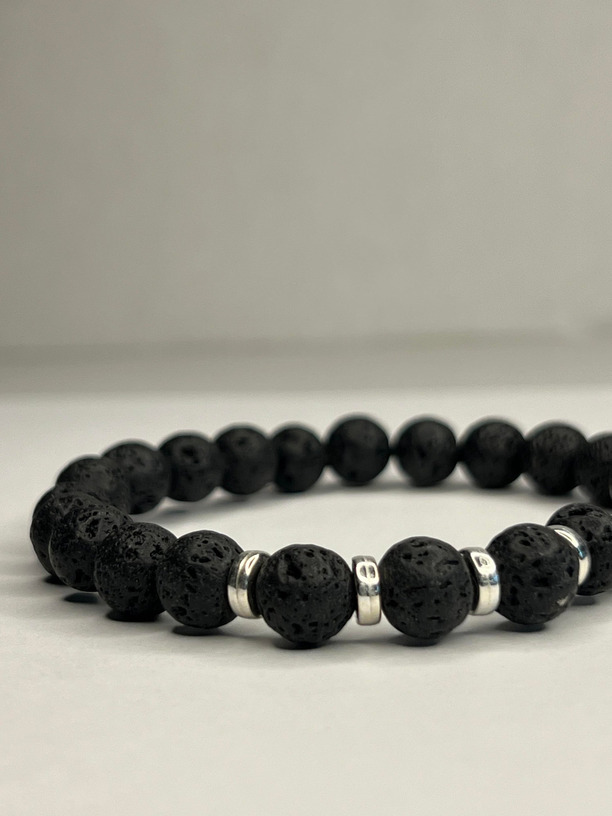 Combining Lava Stone with Steel creates a striking and powerful piece of jewelry. Lava Stone, known for its grounding and calming properties, is formed from cooled volcanic lava and symbolizes strength and rebirth. It's believed to provide stability in times of change and help the wearer to dissipate anger. Paired with Steel, a material celebrated for its durability and modern aesthetic, the resulting accessory is not only visually appealing but also embodies resilience and emotional grounding. This combination offers a unique blend of natural beauty and industrial chic, making it a perfect choice for those seeking a piece that is both energetically potent and stylishly contemporary.