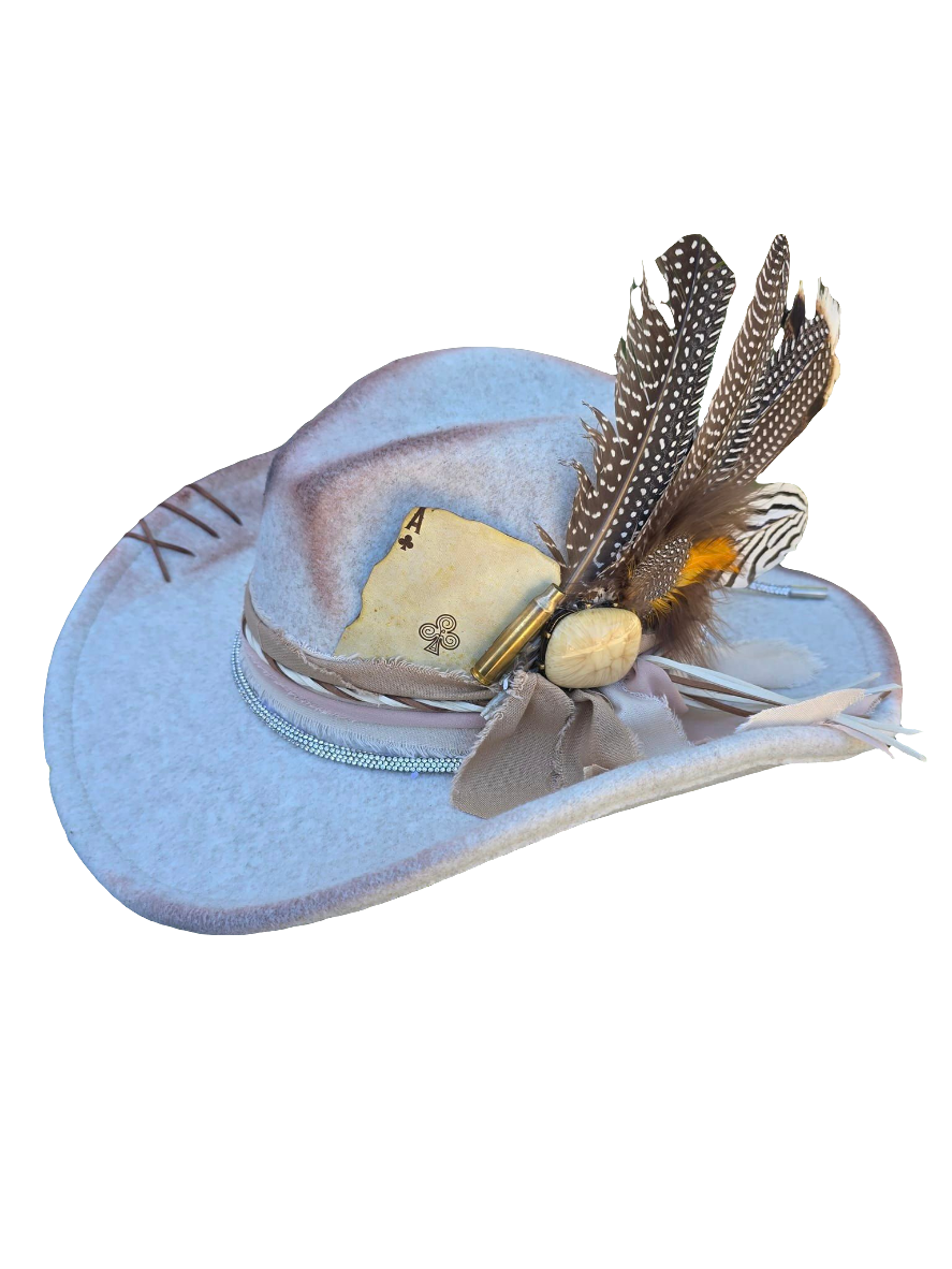 A one-of-a-kind felt cowboy hat exudes unmatched style and individuality. Crafted with precision and artistry, it showcases the timeless allure of the Wild West. From hand-shaped brims to unique embellishments, it becomes a cherished accessory that captures the spirit of the cowboy in a way that is uniquely your own.