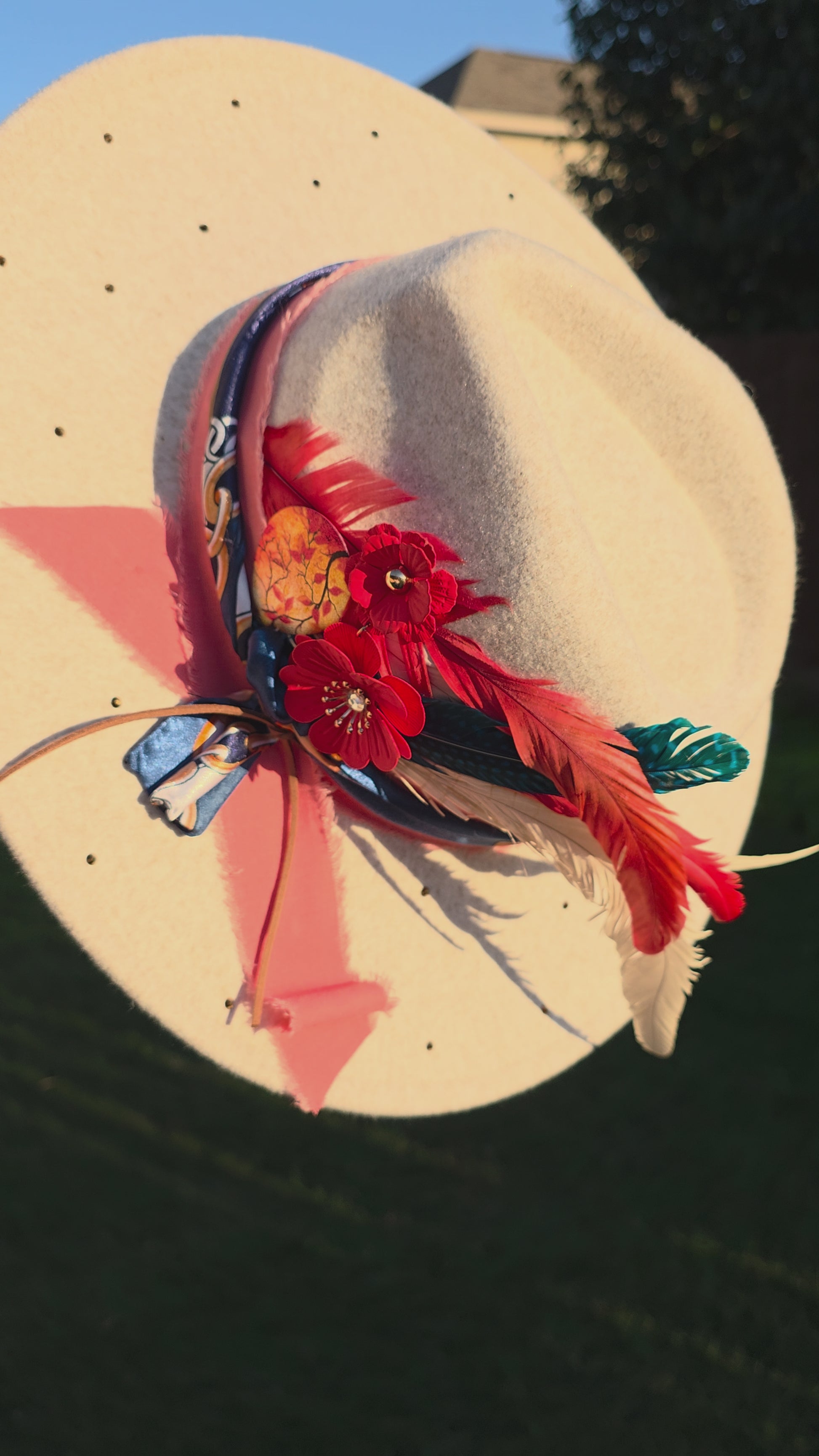 #LightBeigeFedora #FeminineHat #ElegantFedora #LaceAndRhinestones #PinkFlowerHat #RomanticStyle #StatementHat #WhimsicalFashion #HatLovers #FashionAccessories
