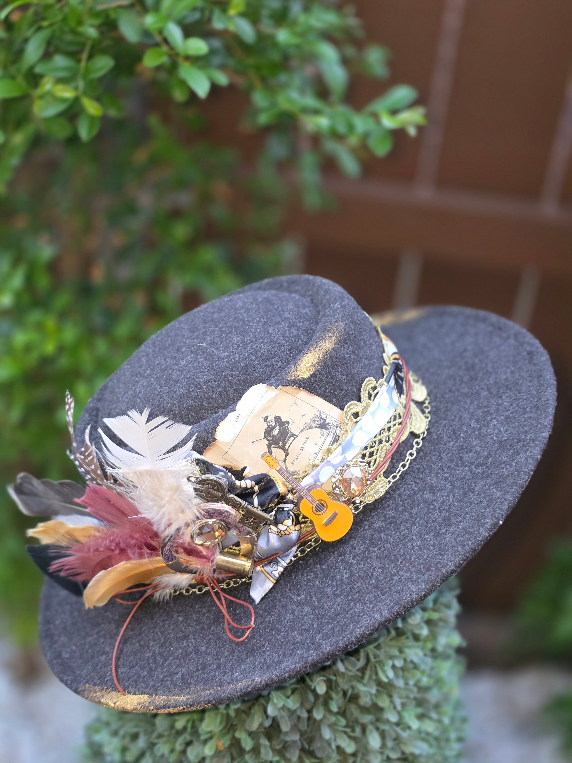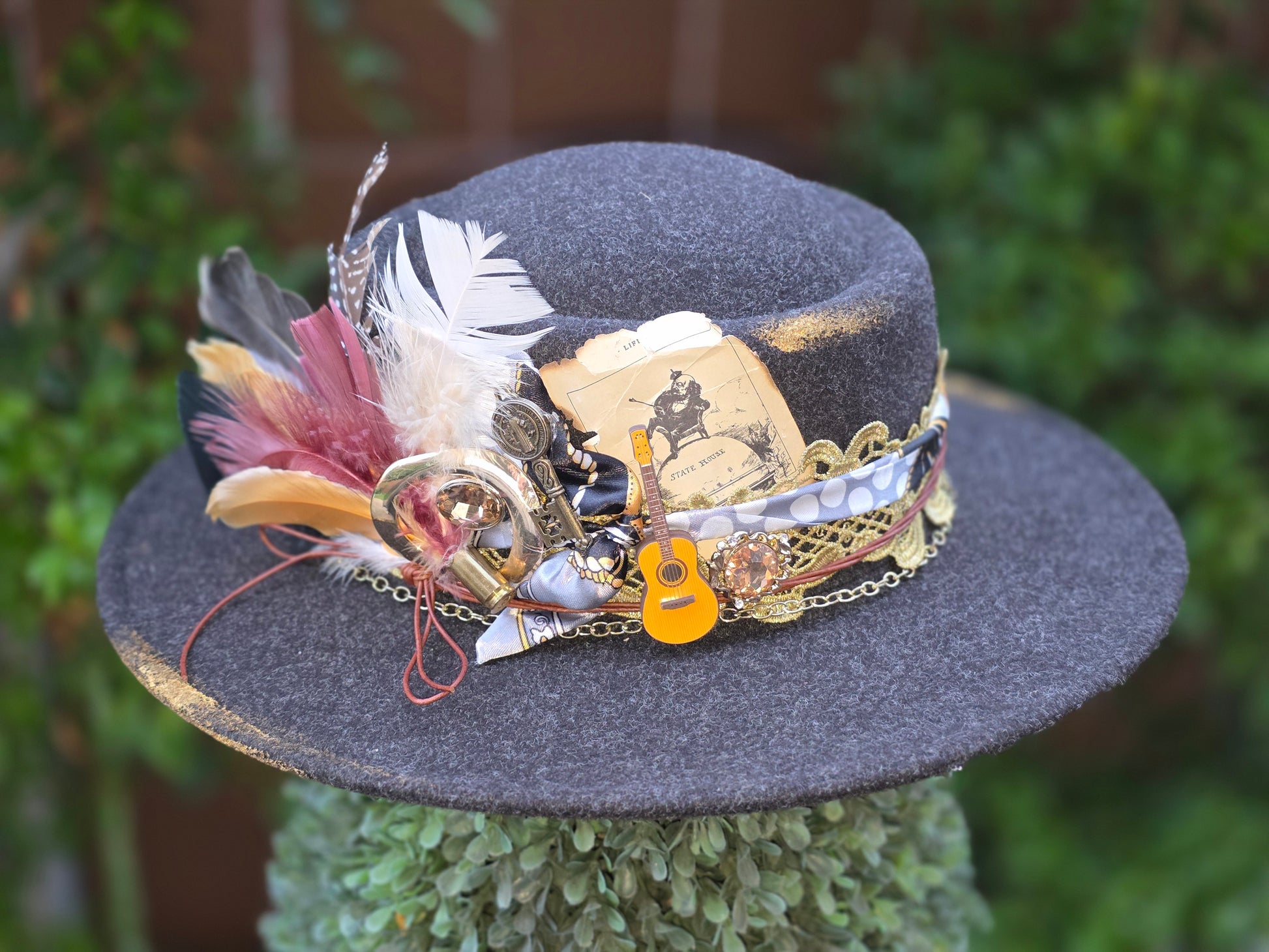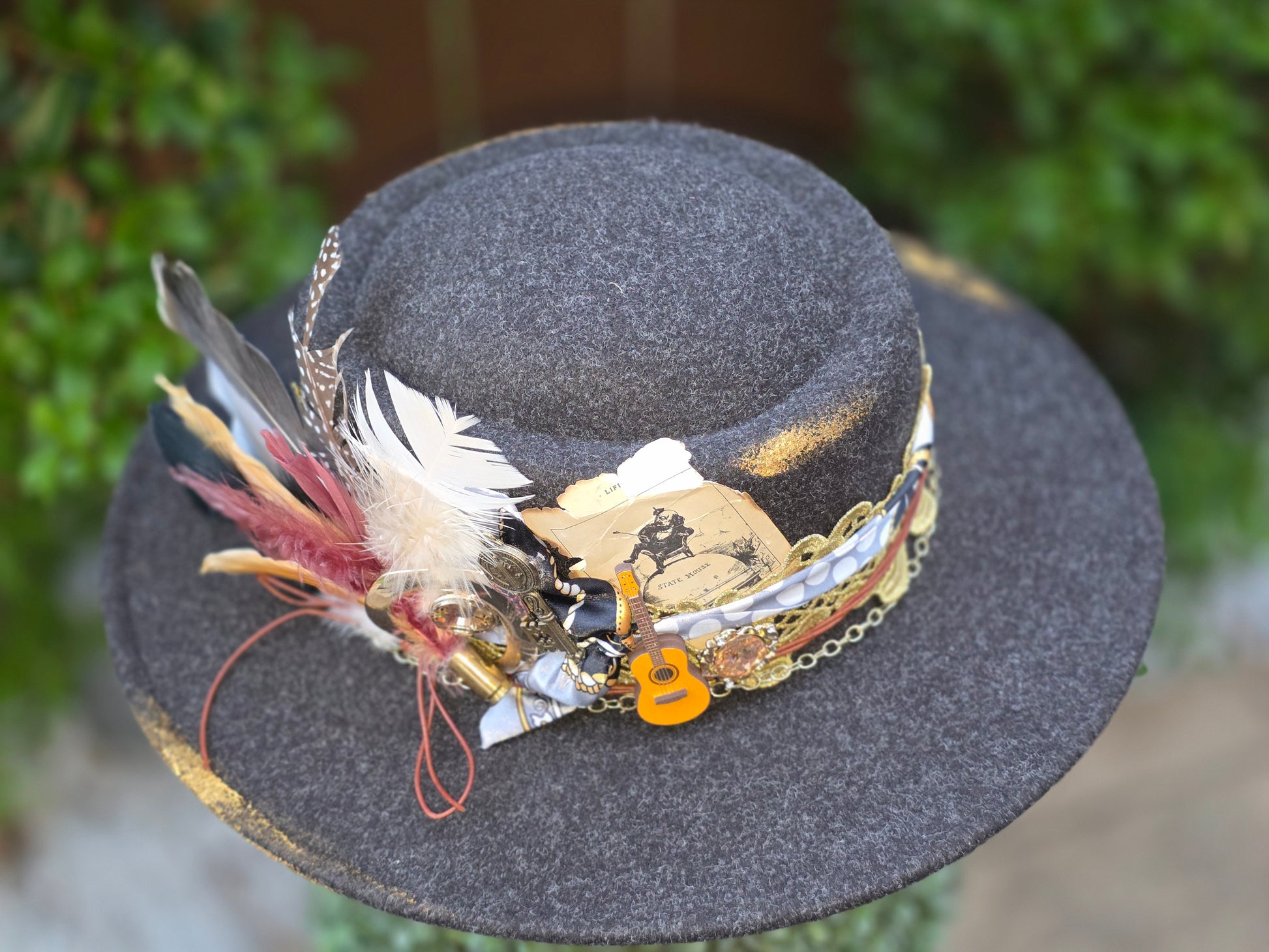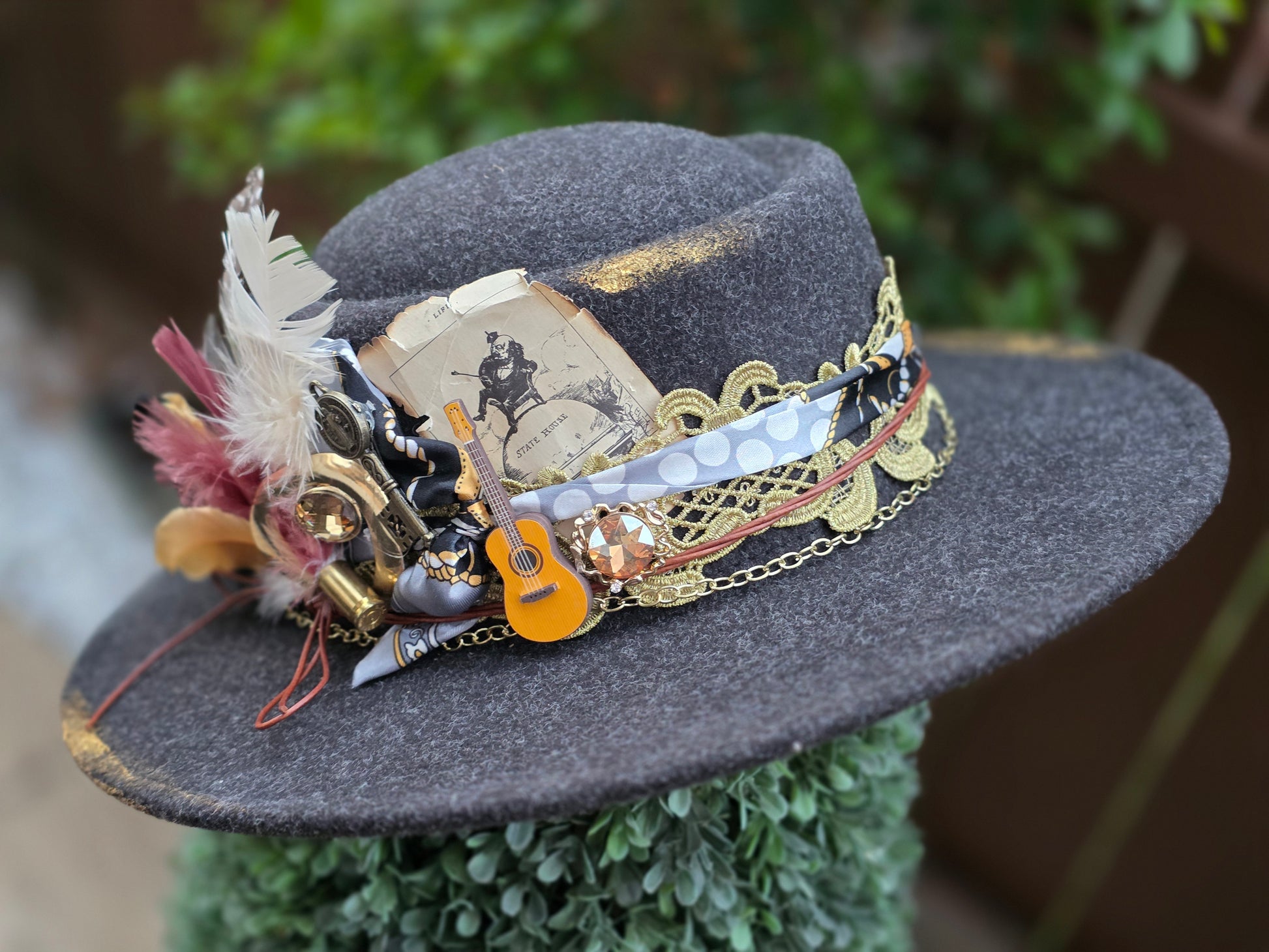 What sets the "Ms. Life on the Edge" hat apart is its unique design elements. Delicate lace detailing encircles the base of the crown, adding a touch of romanticism to the hat's edgy aesthetic. The juxtaposition of the lace against the rich black backdrop creates a visual masterpiece that captures attention from every angle.