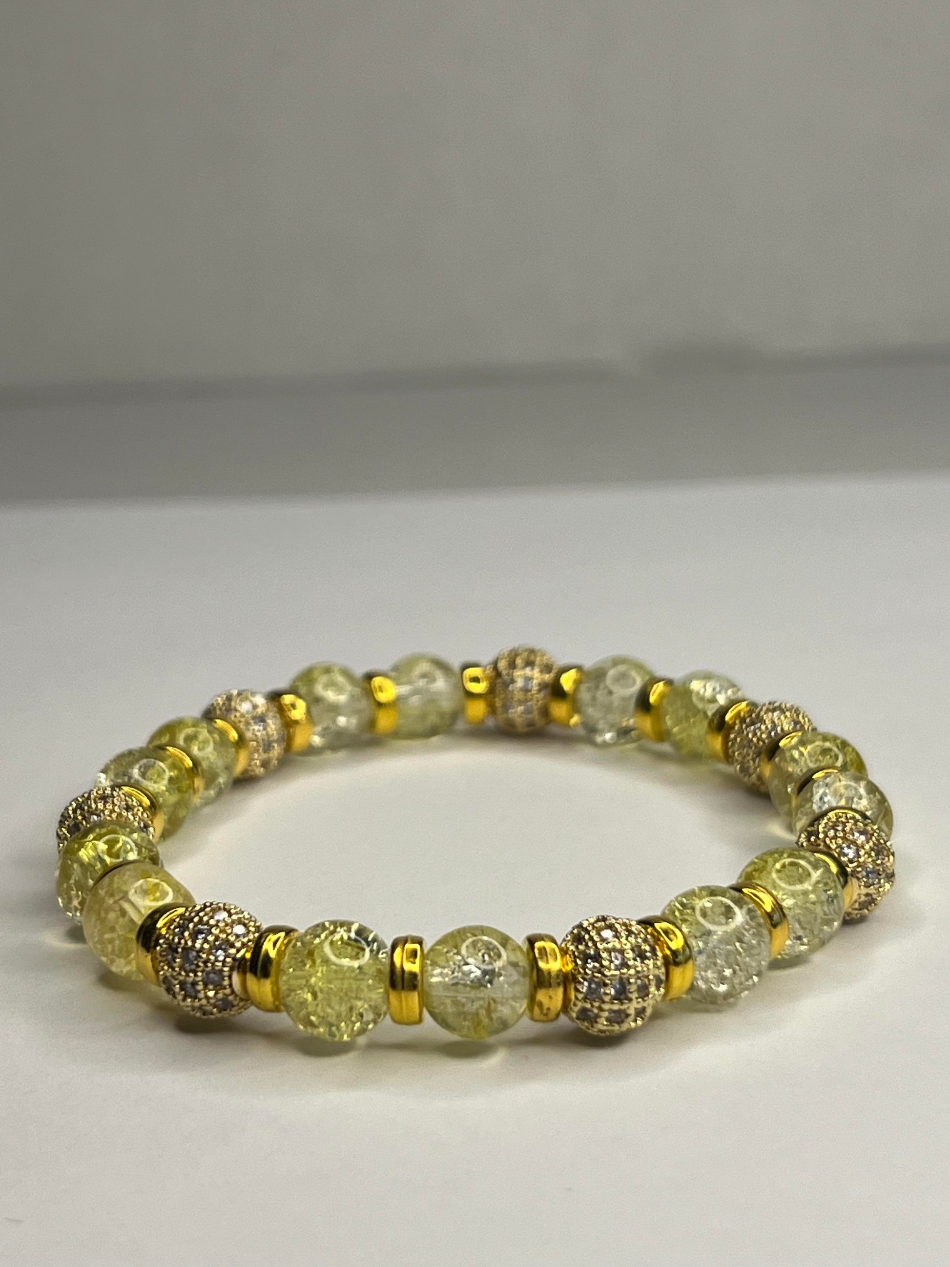 Quartz Crystal, Citrine, Rhinestone-studded natural beads, and Golden Stainless Steel
