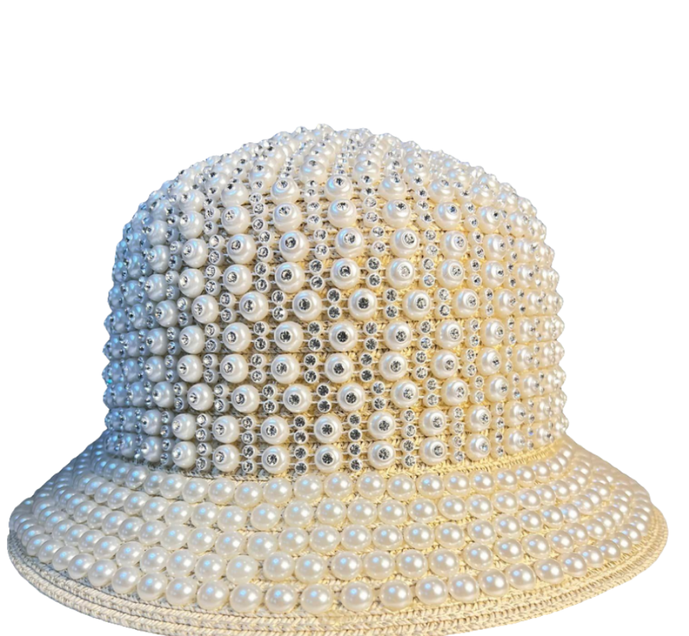 Introducing the glamorous "Ms. Carrie B" rhinestone blast bucket hat, a dazzling fusion of vintage charm and modern extravagance. This hat is a true embodiment of opulence, designed to make a bold and sparkling statement wherever it graces the scene.